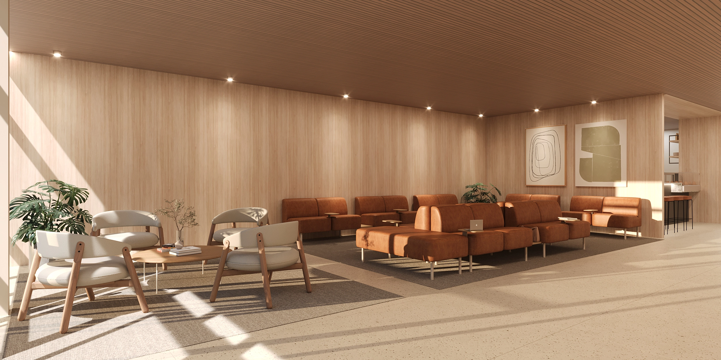 O conforto é outro ponto forte. O estofamento é generoso e pensado para uso contínuo, ideal para quem espera, conversa ou trabalha por períodos mais longos. Em recepções de ambientes de saúde, o Sofá Gabi ajuda a reduzir a sensação de espera, tornando o ambiente mais humano e tranquilo. Já nos ambientes colaborativos, ele estimula encontros informais, trocas de ideias e momentos de pausa sem perder a funcionalidade.